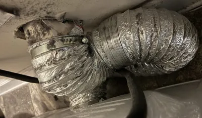 We removed the old hose and installed a properly sized flex connection with a straight run and no kinks. The difference in airflow was immediate.